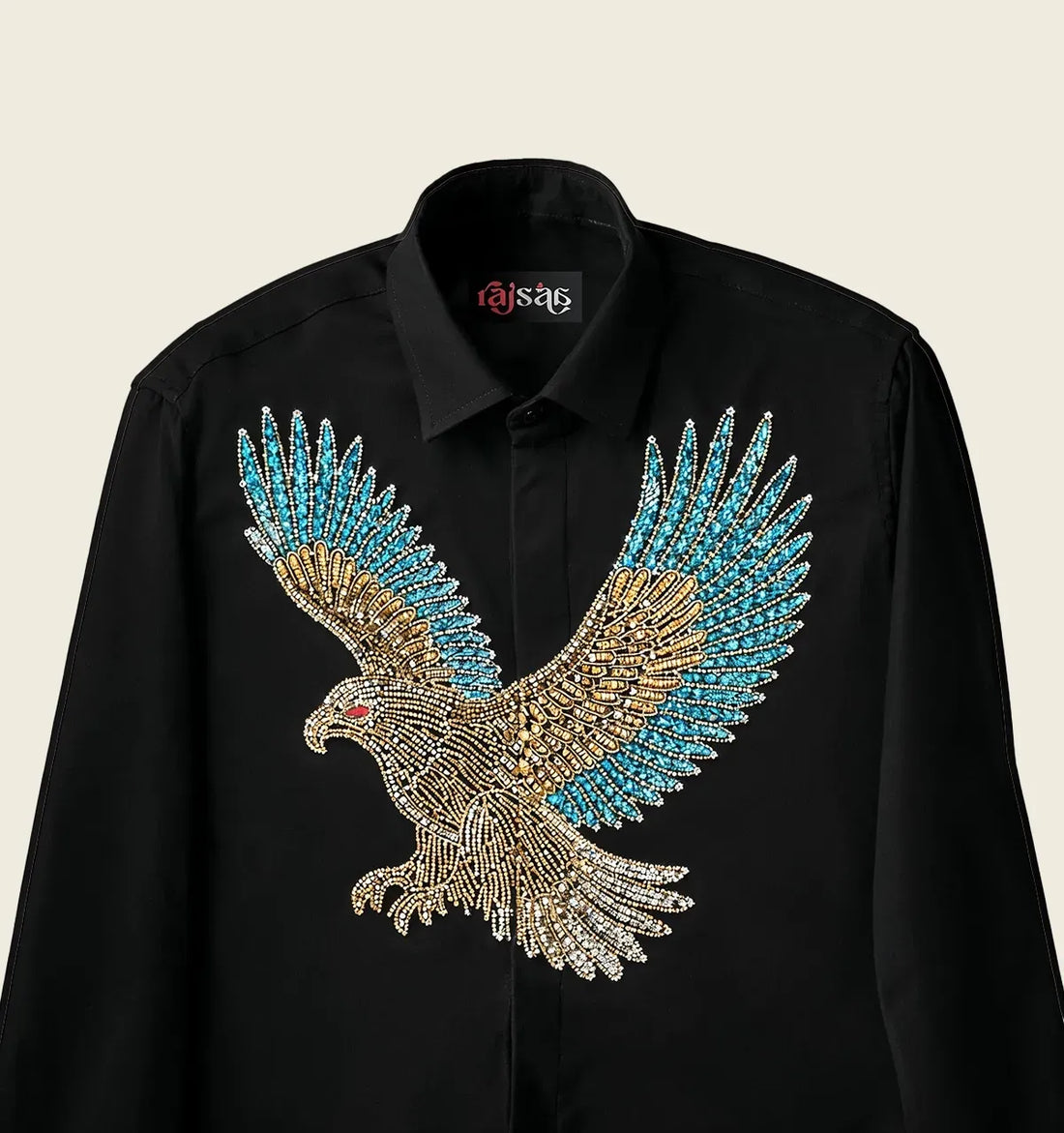 Blue Golden Horse Diamond Pattern with Embellished side Work